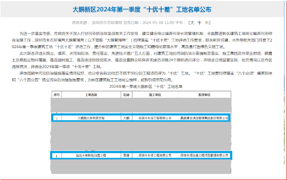 東深工程大鵬新區(qū)養(yǎng)老院項(xiàng)目再次斬獲2024年一季度質(zhì)量安全綜合評估第一名